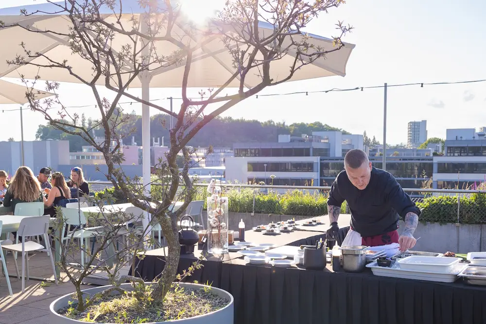 Ob Firmenfest, Tagung, Hochzeitsfest oder Geburtstagsparty, im Kulinarium feiert es sich wunderbar. Wir bieten Rooftop-Terrasse, Discobereich, eine grosse Bar sowie Event- und Tagungsfläche – für bis zu 200 Gäste, in Bern. Unsere transparenten Preise geben Ihnen Sicherheit und Kostenkontrolle. Kontaktieren Sie uns, wir erzählen Ihnen gerne mehr.